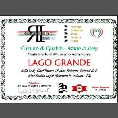 Lago Grande con sede ai Laghi di Monticchio nel comune di Rionero in Vulture, in provincia di Potenza, è un ristorante aperto nel 1983 e gestito con competenza dallo Chef Silvana Felicetta Colucci.