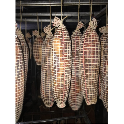 Ottenuto dalla lavorazione della porzione superiore del collo del maiale e da parte della spalla. Legato a mano secondo la più antica tradizione, il capocollo presenta al taglio una fetta compatta di colore rosso intenso interposto da striature di bianco rosato.