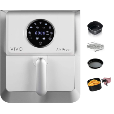 VIVO Air Fryer è uno strumento di cottura innovativo che ti permetterà di cucinare e in particolare di friggere in modo più sano, più sano e più gustoso. Grazie a questo multicooker infatti è possibile friggere utilizzando fino al 90% di olio in meno rispetto ad una friggitrice tradizionale, inoltre si possono realizzare preparazioni come grigliate o al forno, realizzando così focacce, pizze, torte salate o anche spiedini o arrosti.