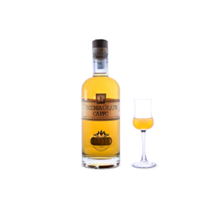 Dalla distillazione di selezionate vinacce da uve rosse e bianche nasce la Vecchia grappa Caffo, dal colore ambrato, ricca di sentori di miele, legno e vaniglia. Le lievi note tostate e caramellate attestano la lunga permanenza in botti di rovere e alla fine regalano un prodotto inebriante, fine ed elegante, ideale per riscaldare le freddi serate d’inverno.