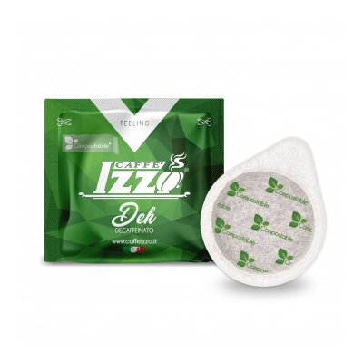 Cialda compostabile E.S.E. 44 mm contenente 7,2 g di caffè, miscela Dek, macinato e torrefatto confezionata in atmosfera protettiva