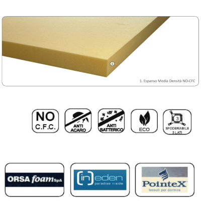 Realizzato con lastra unica di Water Foam imbottitura anallergica rivestimento sfoderabile per
